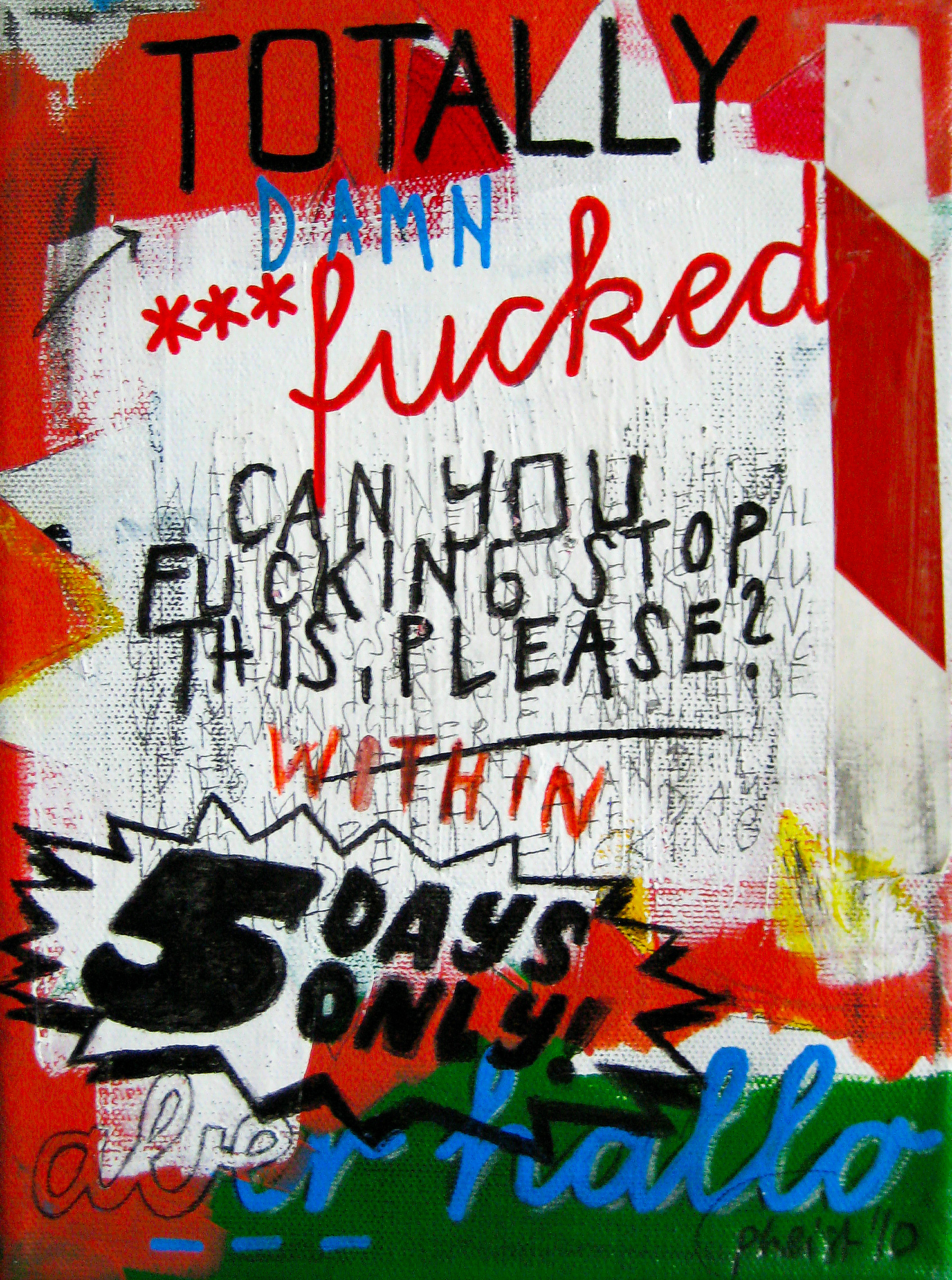 Typetrash SeriePaintings / 2010 / 24cm × 18cm / stretcher-frameMixed media on canvas — acrylic color, spray paint, marker, oil crayon, glue, paper, graphite, color pencil, ink.Buy original artworks:drop me a line