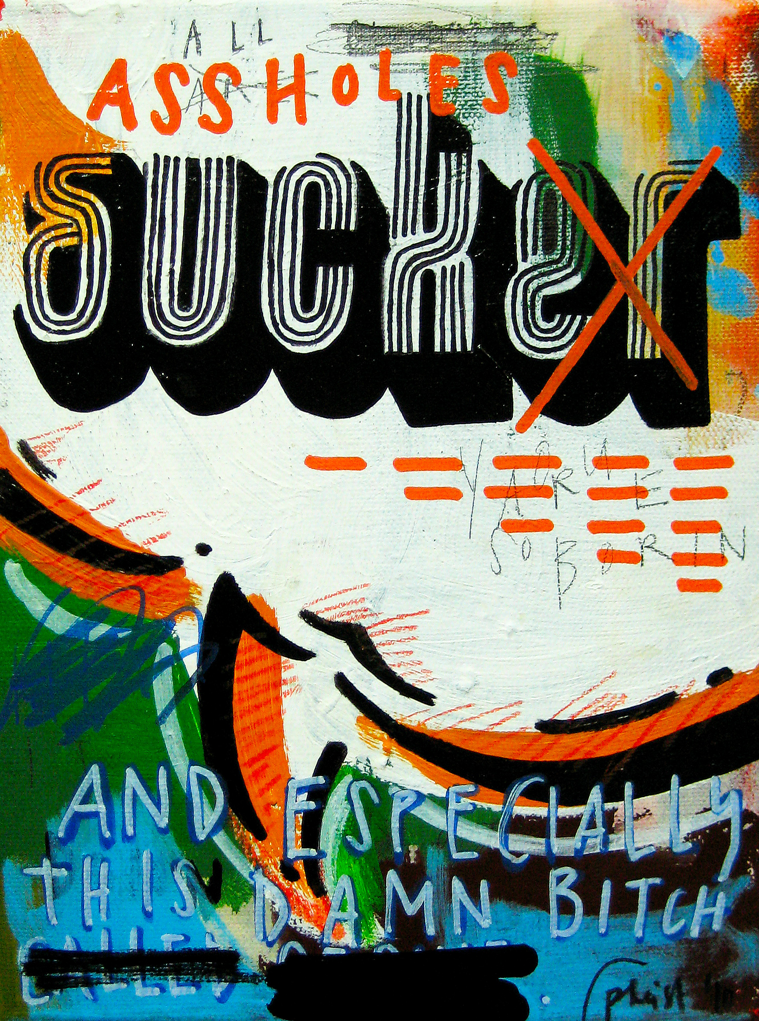 Typetrash SeriePaintings / 2010 / 24cm × 18cm / stretcher-frameMixed media on canvas — acrylic color, spray paint, marker, oil crayon, glue, paper, graphite, color pencil, ink.Buy original artworks:drop me a line