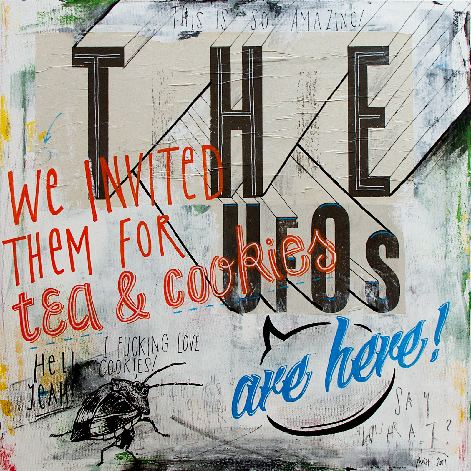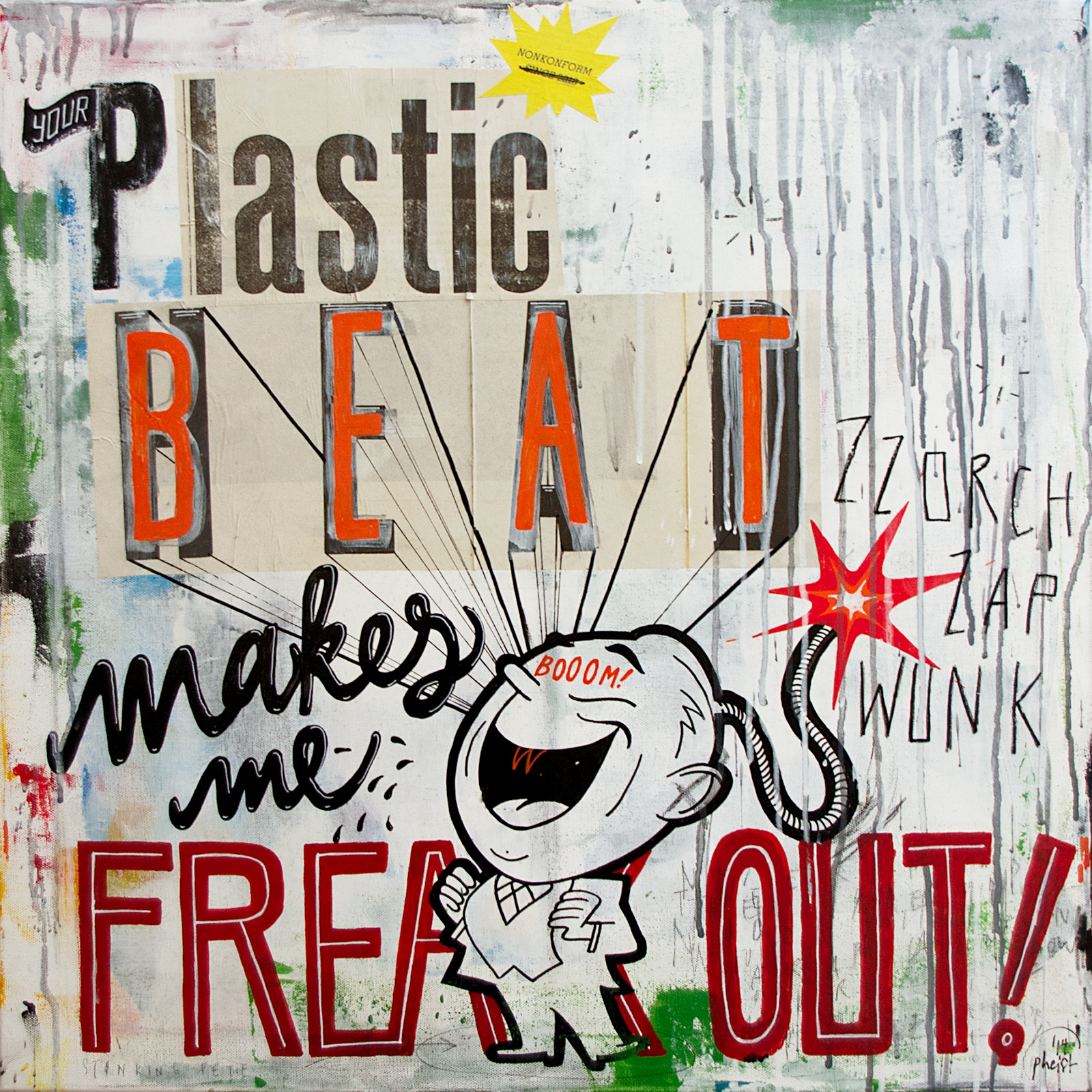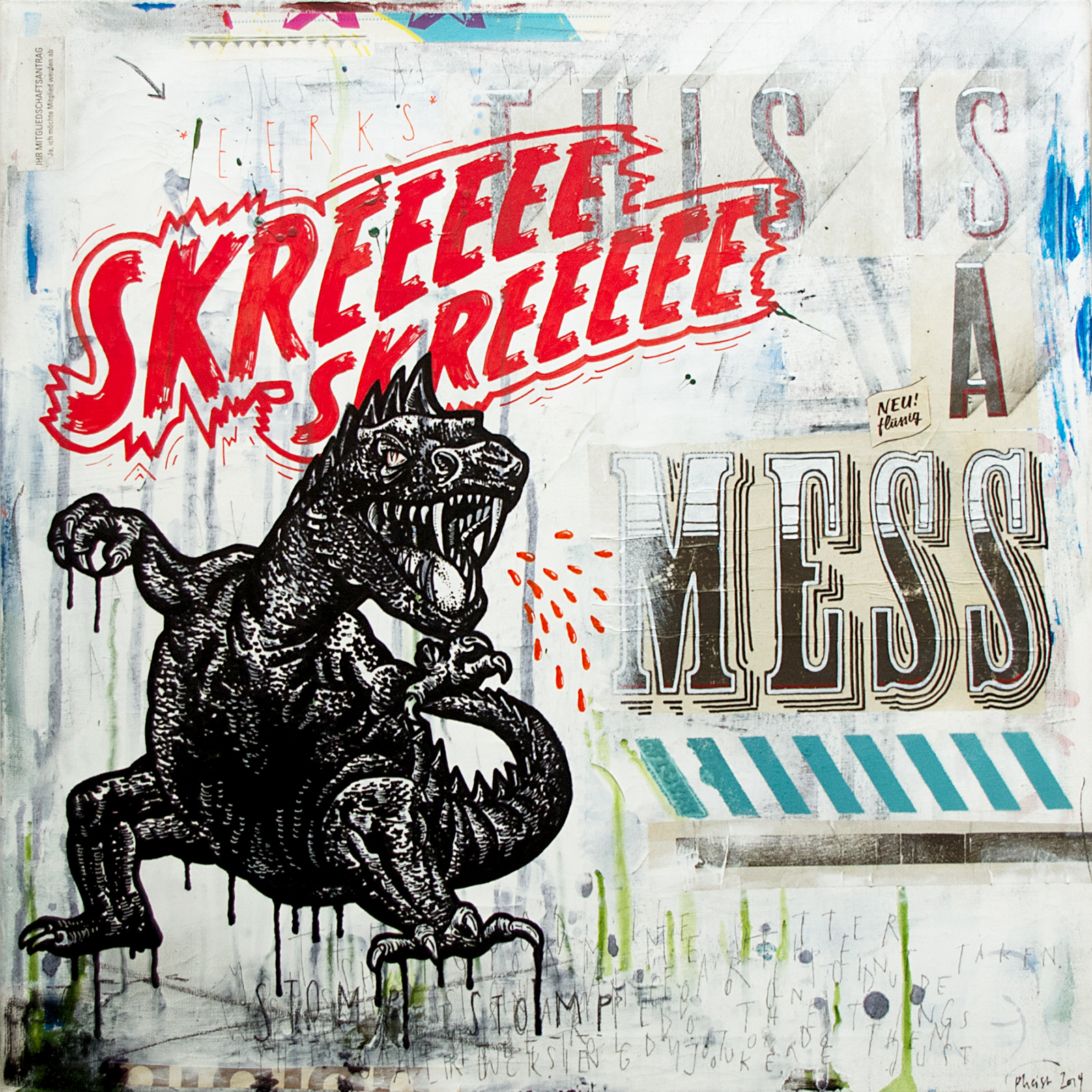 60cm × 60cm CanvasPaintings / 2013–2026 / 60cm × 60cm / stretcher-frameMixed media on canvas — acrylic color, spray paint, marker, oil crayon, glue, paper, graphite, color pencil, ink.Buy original artworks:drop me a lineBuy fine art prints:society6.com/pheist/prints