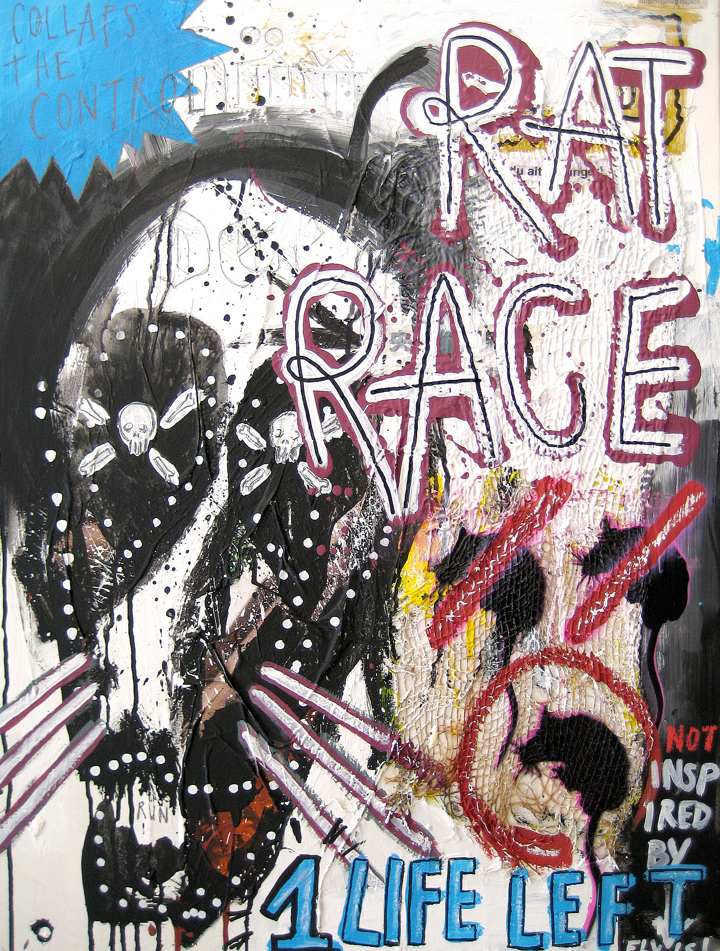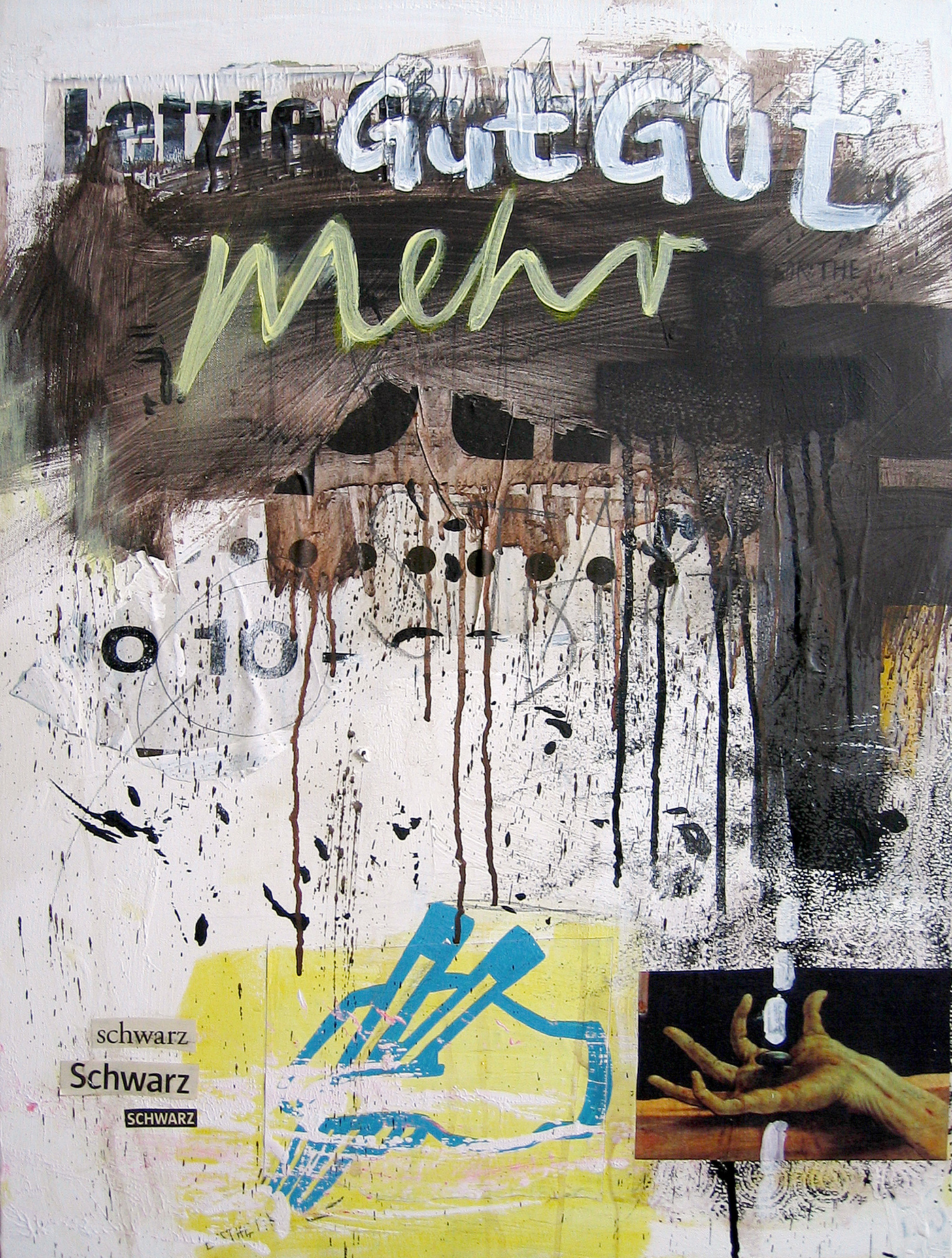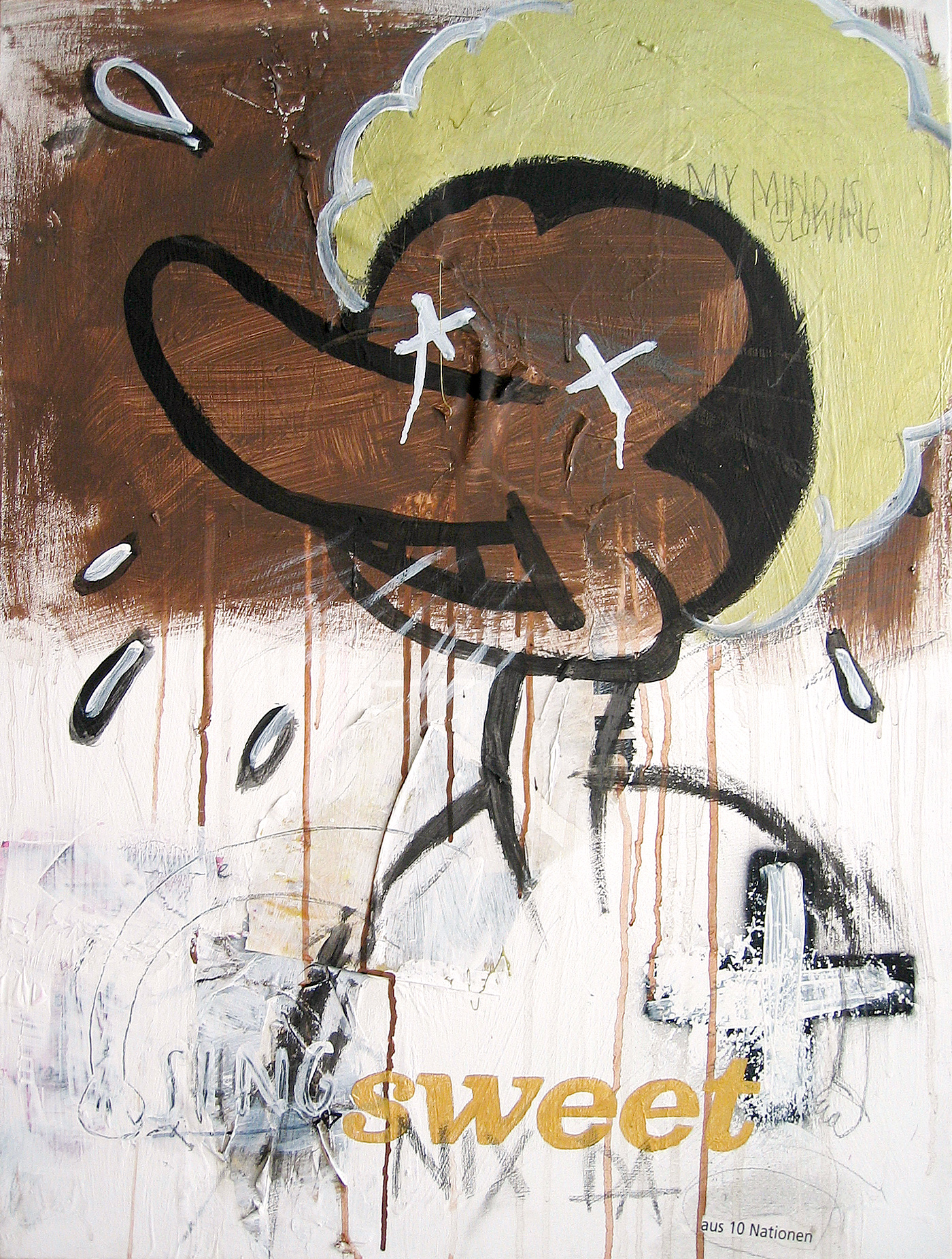 The collaboration with the artist Markus Giltjes (bobok) started in 2006. Together we worked on 21 images - each one exchanged about five times. Acrylic color, marker, spray paint, paper, glue and some other material on canvas. Preview with a selection of 8 paintings.